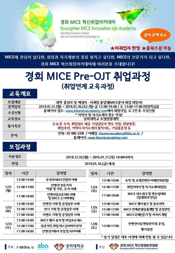 [안내](경희대학교) 경희 MICE Pre-OJT 취업과정(취업연계 교육과정)