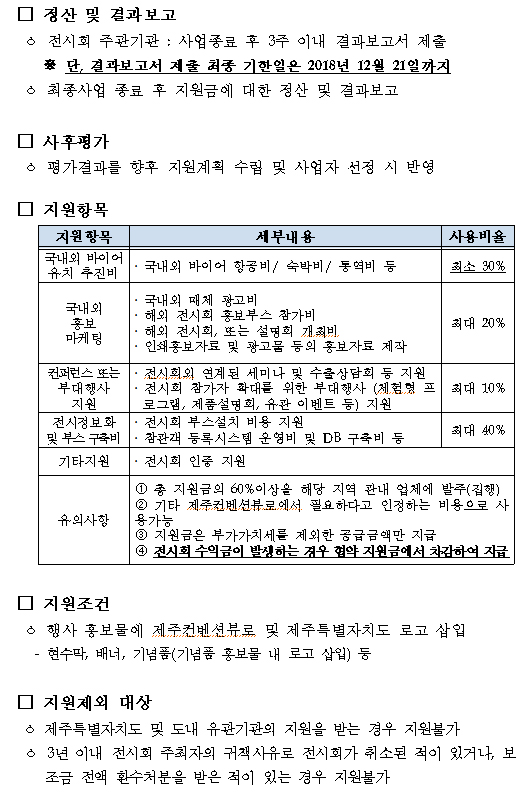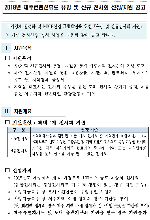 [공고](제주컨벤션뷰로) 2018년 제주컨벤션뷰로 유망 및 신규 전시회 선정/지원 공고