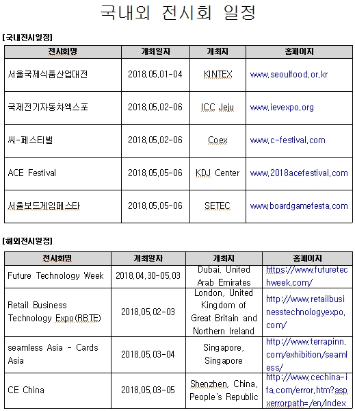 [안내](진흥회) 2018년 5월 1주 전시회 일정 안내