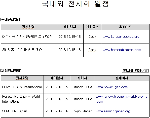 | 제목 | [안내](진흥회) 2016년 12월 3주 전시회 일정 안내 |