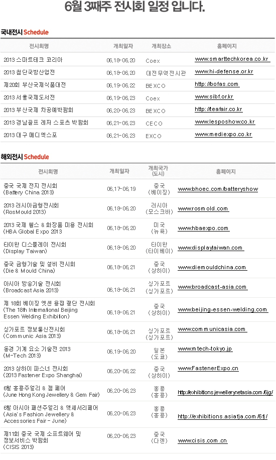 | 제목 | [안내](진흥회) 6월 3째주 전시회 일정 안내 |