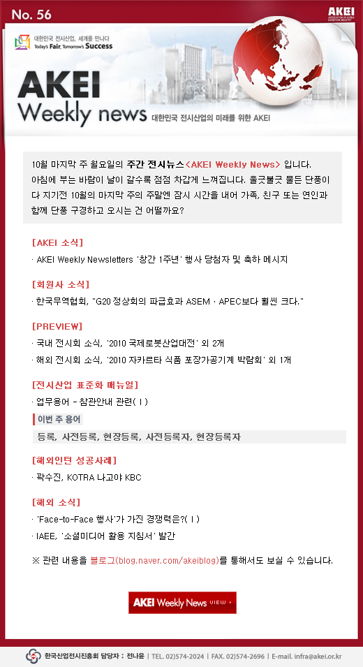 | 제목 | [안내](진흥회) WN 56호 'AKEI Weekly Newsletters 창간 1주년 행사 당첨자 및 축하 메시지' 외 |