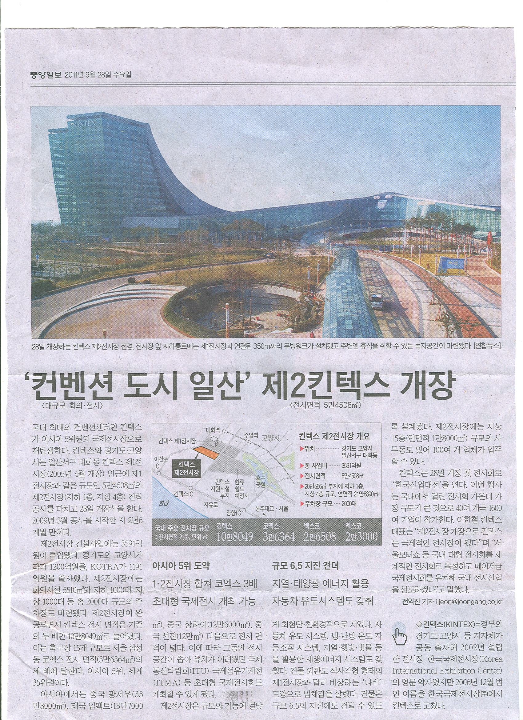 [국내] '컨벤션 도시 일산' 제2킨텍스 개장(중앙일보)