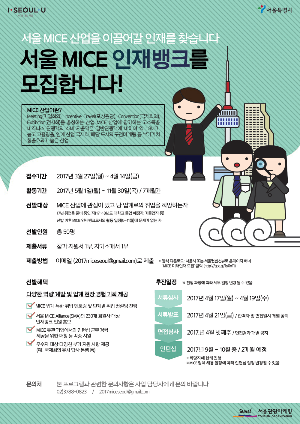 | 제목 | [서울시] 서울시 MICE 인재뱅크를 모집합니다! |