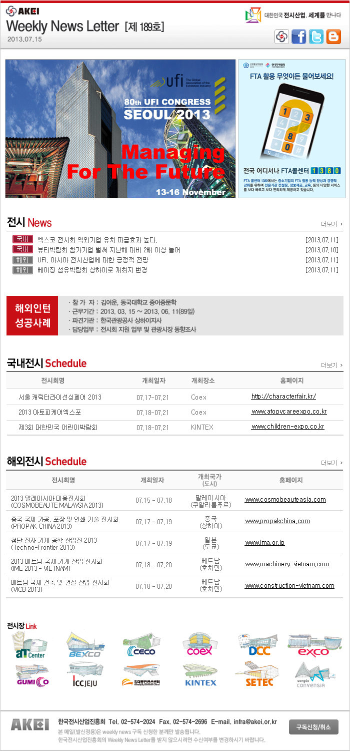 주한외국공관초청설명회 산업통상자원부 중소벤처기업부 소상공인시장진흥공단 전시장 온라인 등록시스템 전시UP 전시산업 구인구직 전시회 정보포털 쇼알라 GEP글로벌전시포털 전시장안전관리교육시스템 한국전시디자인연감 전시산업 인력양성 및 교육